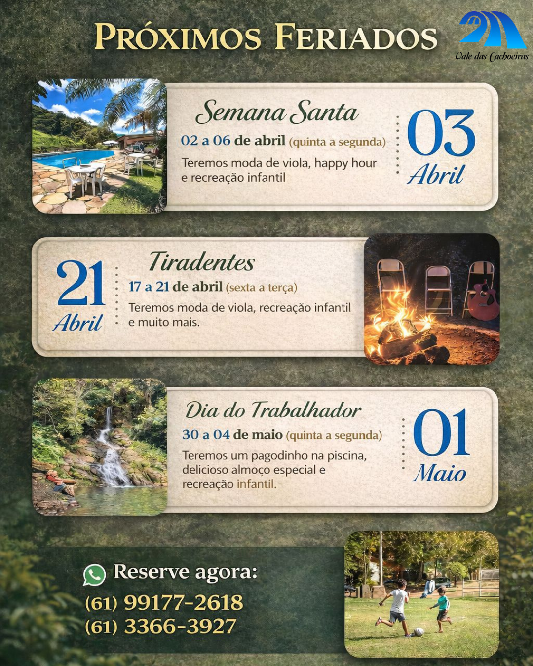 Os chalé com ar são mais rústicos e ficam próximo do restaurante e da cachoeira principal. Comporta até 4 pessoas tem uma área na frente com rede.